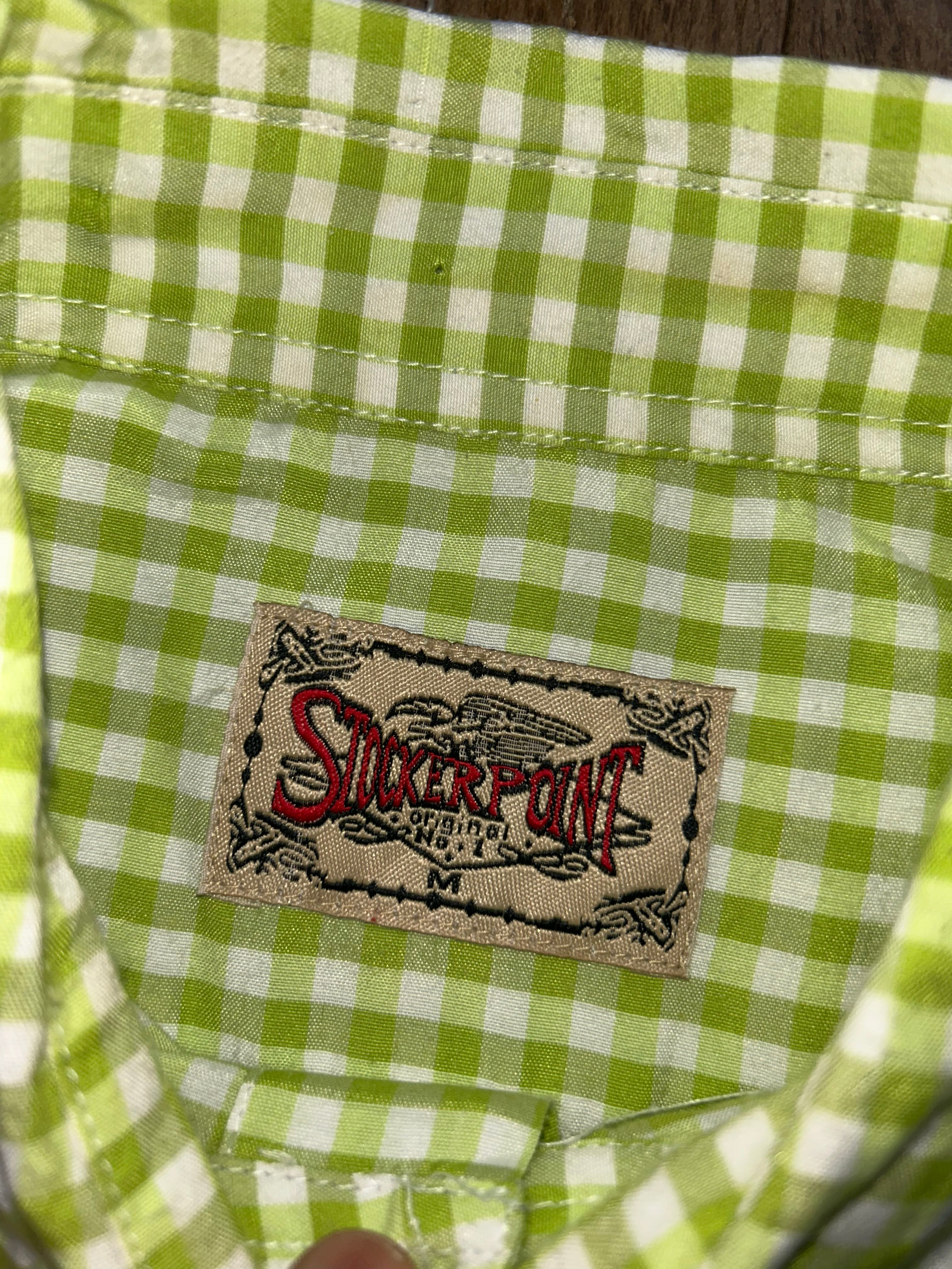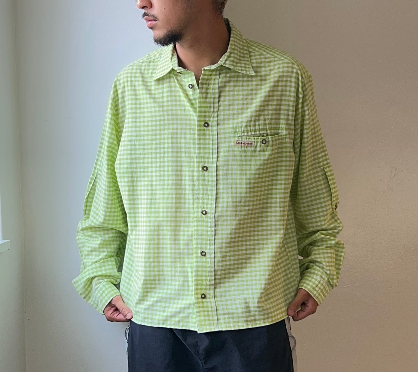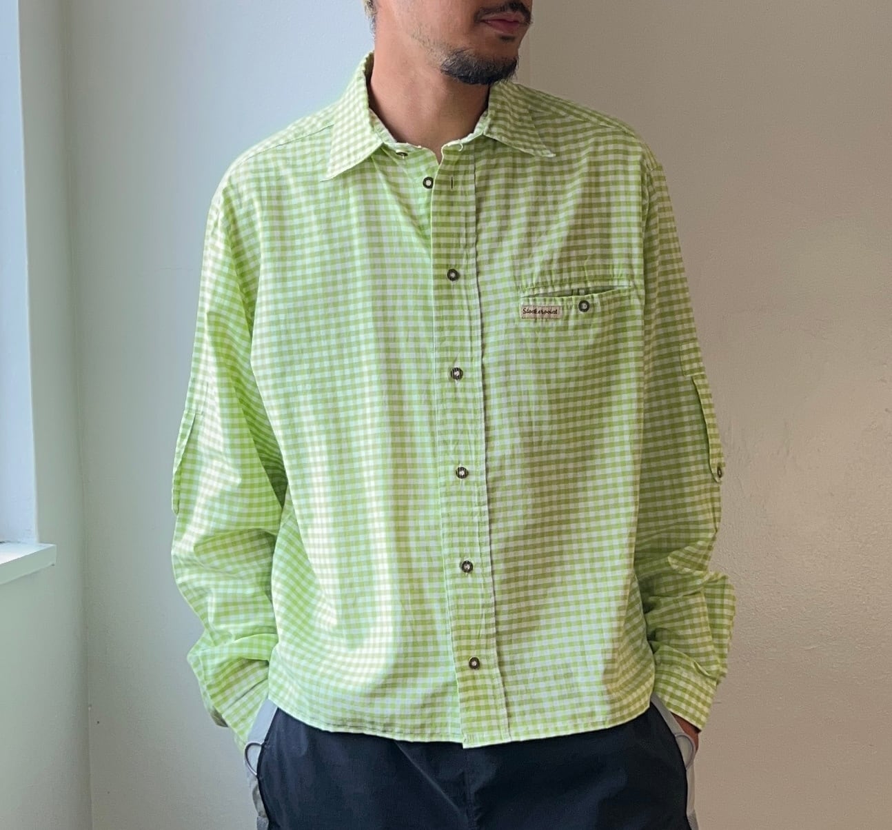 Green gingham check long sleeve boxy shirt