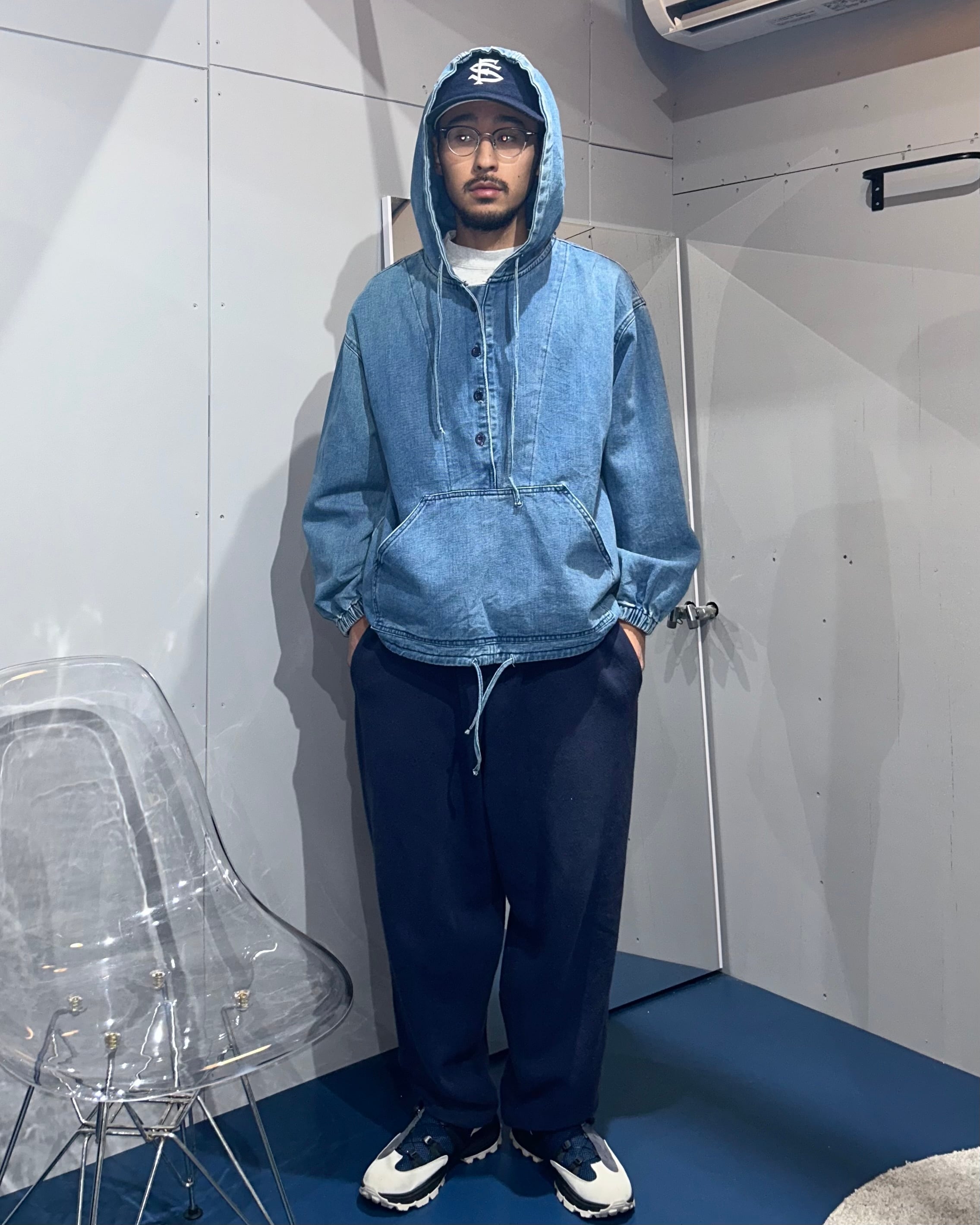 short length denim anorak parker