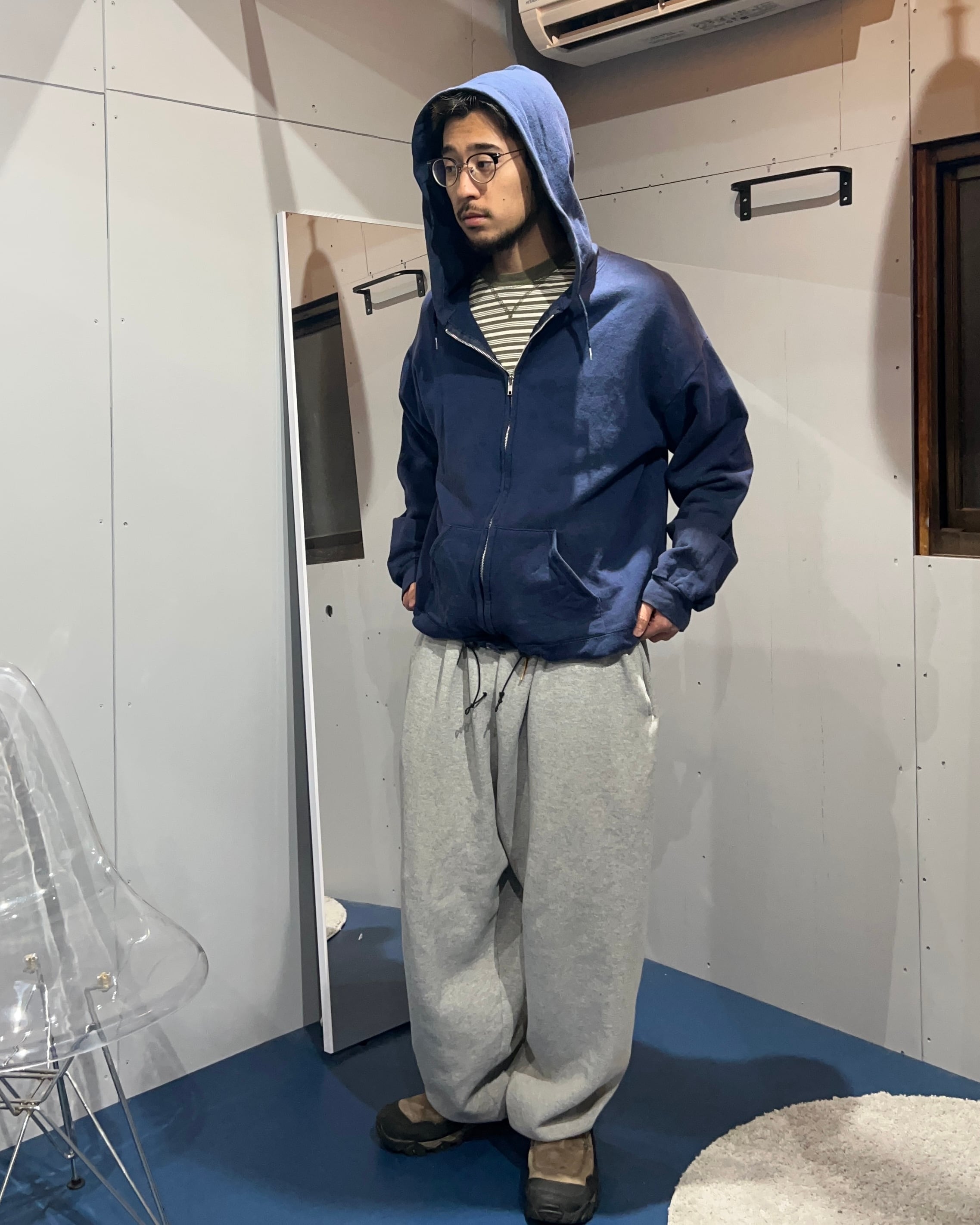 Hanes navy boxy fullzip parker