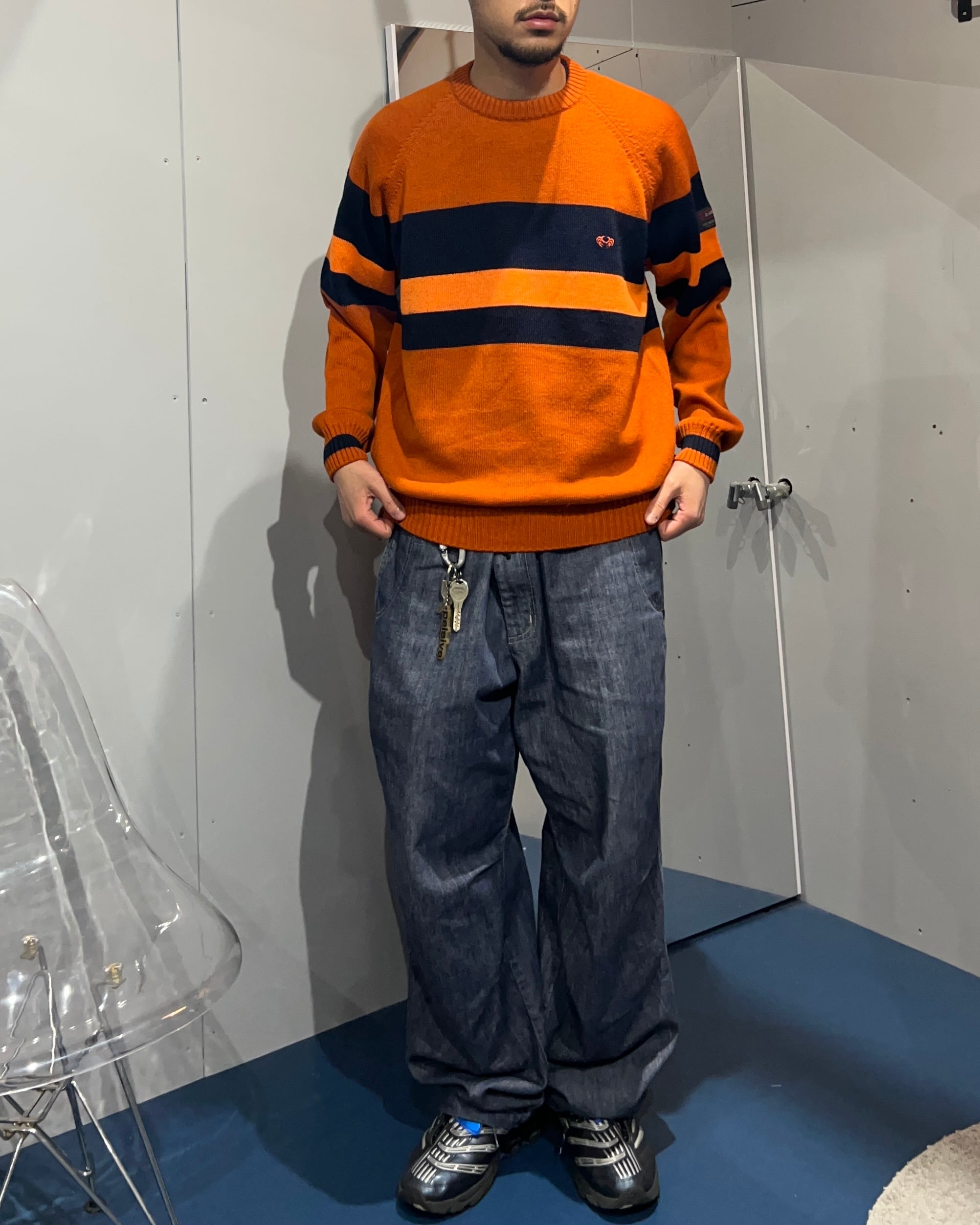 Acryl wool border sweater
