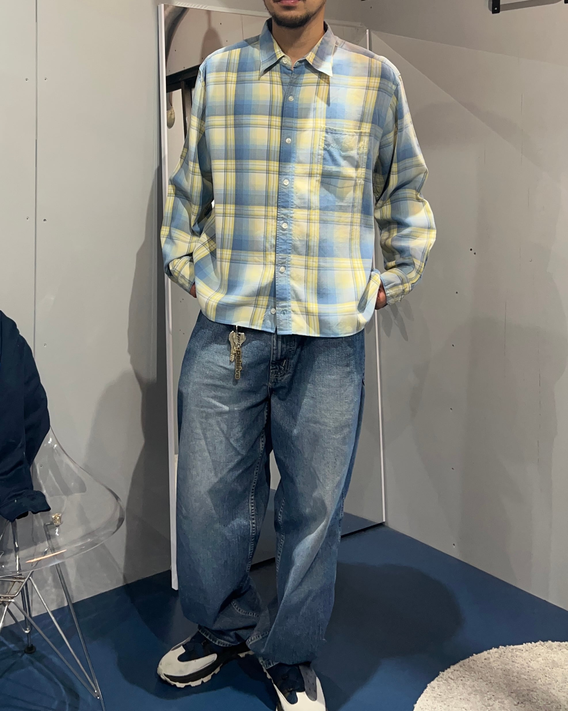 Tommy Bahama silk plaid check long sleeve boxy shirt